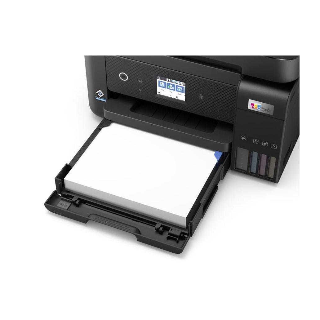 Impressora multifunções A4 com fax e ADF: Impressão, cópia, digitalização e fax – Impressão de custo ultra reduzido: Poupe até to 90% nos custos de impressão – Até 72 tinteiros num conjunto de tintas1: Imprima até 7500 páginas a preto e 6000 páginas a cores – Sistema de tanque de tinta sem complicações: Desfrute de carregamentos sem complicações com garrafas com bloqueio por chave e tanques frontais – Aplicação Epson Smart Panel: Configure, monitorize, imprima, digitalize e muito mais a partir do seu dispositivo inteligente